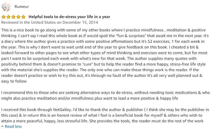 Your weekly guide to de-stress yourself over a 1 year period.